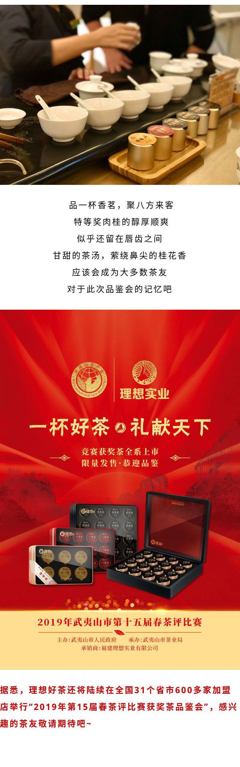 作為中國高端商務茶品牌,理想好茶始終堅持“從茶園到茶杯”的溯源標準,以“好茶不怕斗”的精神,連續(xù)4年榮膺武夷山官方斗茶賽賽事執(zhí)行單位暨獲獎茶指定承銷商,用好茶禮贈貴賓,用一份份客戶見證,真正做到“好品質(zhì)有口皆碑”。